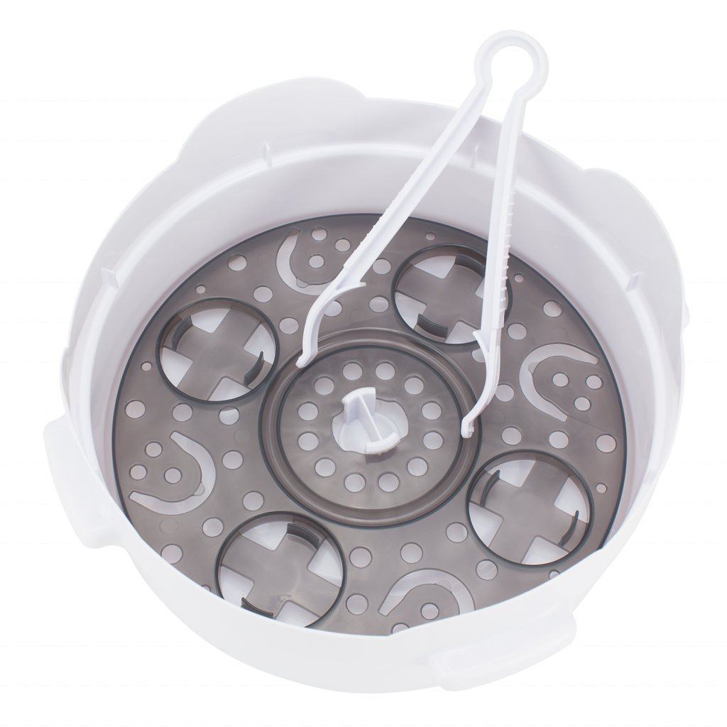 Sterilizează sticlele Dr. Brown, cu tava particularizată pentru toate componentele flaconului.