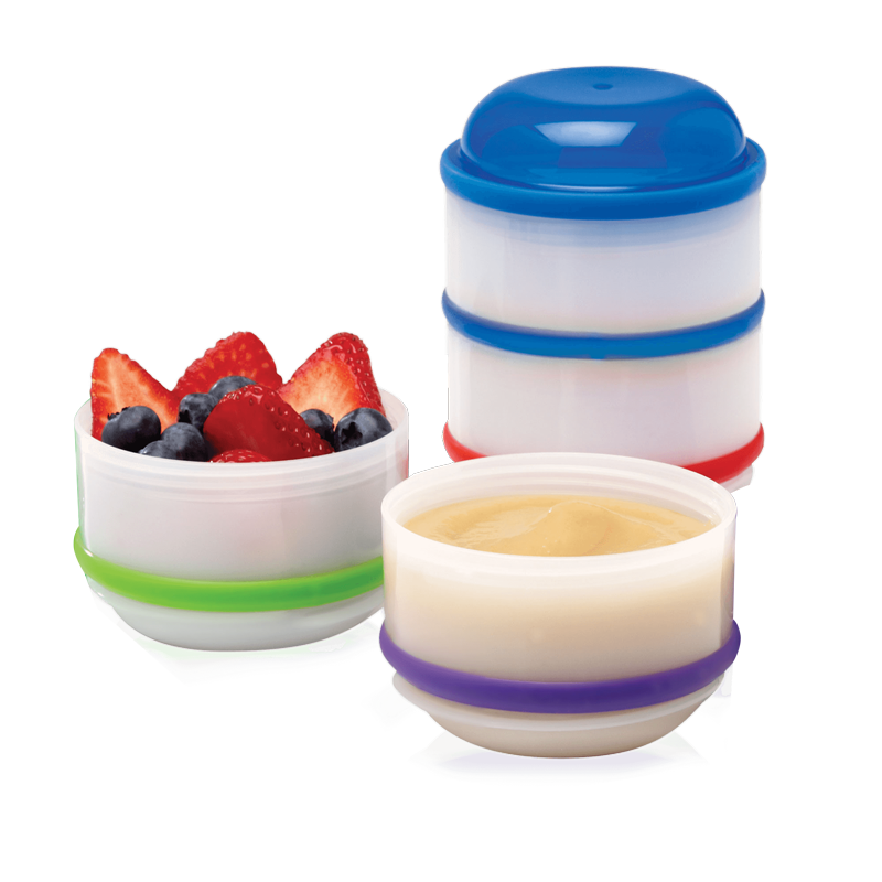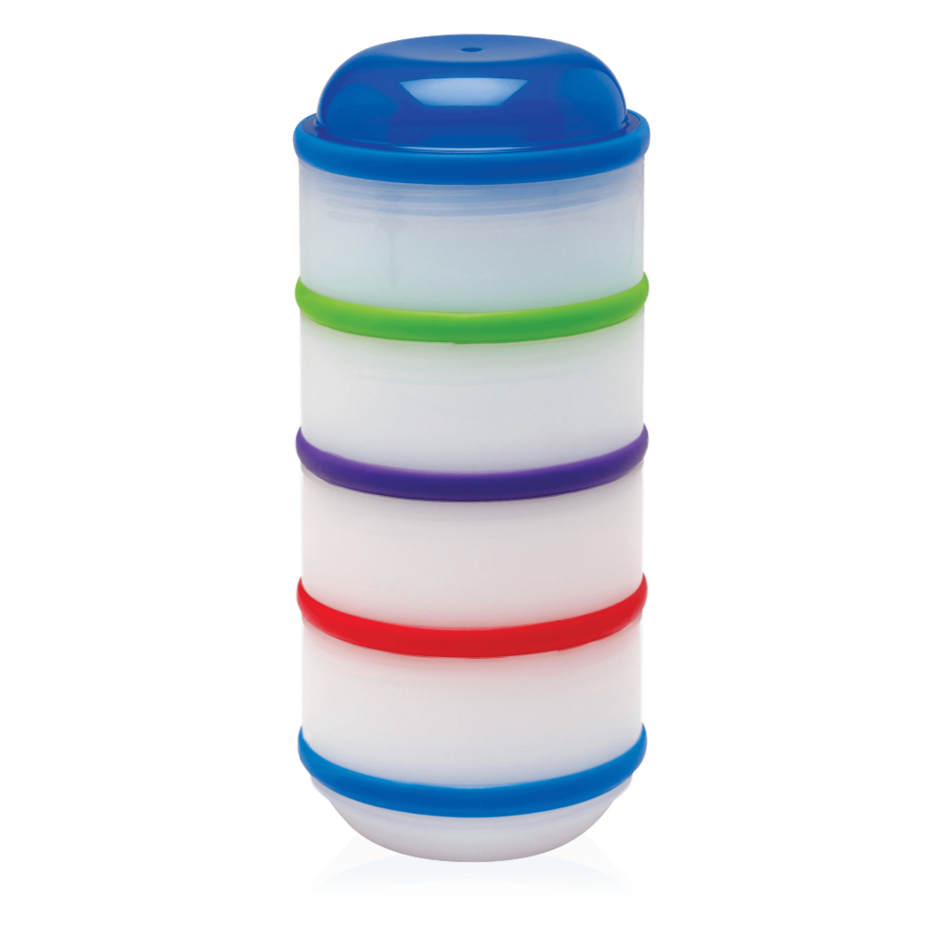 - 4 cutii supraetajate, potrivite pentru hrana bebelusului. Se găsesc într-o varietate de culori luminoase