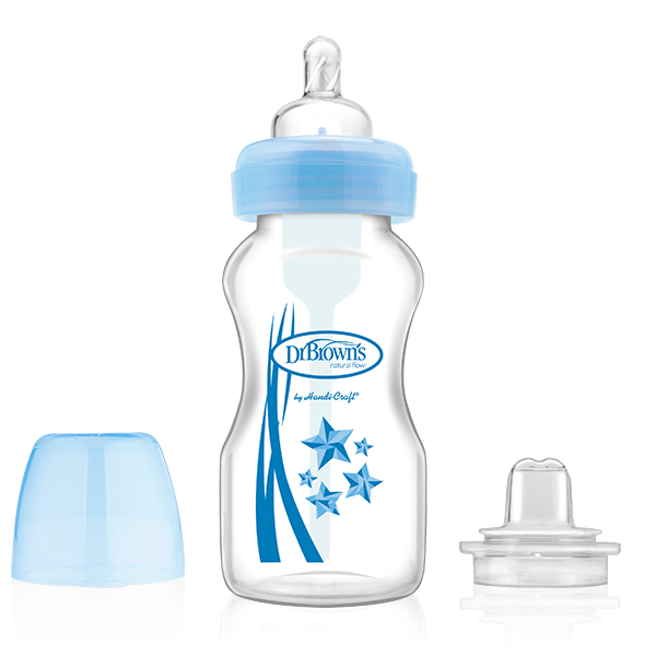 Ajuta-l pe micuțul tau să treacă confortabil de la biberon la canita, cu setul de biberoane pentru tranziție 2-în-1  Dr. Brown’s. Setul de biberoane de tranziție 2-în-1 Dr. Brown’s este proiectat să crească odata cu copilul și să se transforme cu ușurință de la biberonul Options® la ciocul moale de canita.